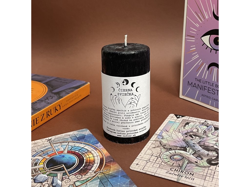 Čierna sviečka spaľuje a pohlcuje negatívne energie. Pôsobí proti urieknutiu, kliatbám, závisti a neprajnosti.
