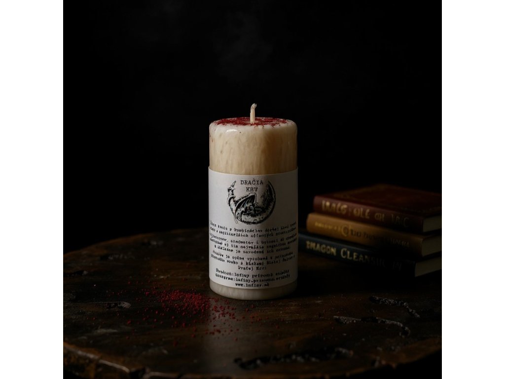 - Sviečka obsahuje kúsky Bielej Šalvie namočenej v živici Dračia krv
